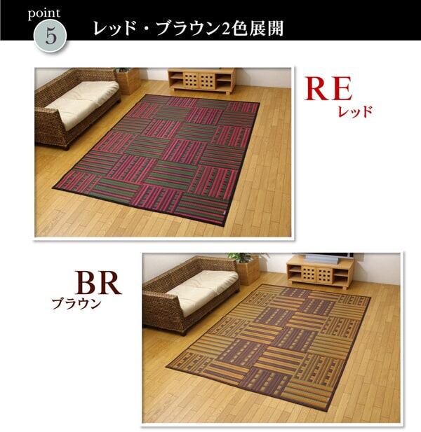 メーカー独自の超特殊な織り方で仕上げた『柳川段通』シリーズのイ草カーペットです。柳川段通の特長として①厳選したイ草を通常の商品よりも約2.2倍(メーカー比)使用しています。②ヘリ生地は久留米織りの生地を使用しています。久留米織りとは福岡県久留米地方の伝統的な織りもので、着物や洋服によく使われている貴重な織りものです。③本商品の織り職人はこの道一筋20年〜40年の熟練の匠です。柄の特長として『和室・洋室どちらにも似合う敷きやすい段通』をコンセプトに作りました。永くご使用頂きたいので飽きのこない格子柄で、細部にはドットやボカシといった変化を持たせたデザインに仕上げています。さらに本商品は四重に織ることで耐久性、ボリューム感、圧倒的な存在感のある商品に仕上げました。国産(九州産)のい草を使用しています。一本一本が太く、表皮が厚く繊維がキメ細かいので弾力性があり、耐久性に優れています。い草には空気の自然浄化作用、湿度の調節作用などがあります。また汚れにくく、使用するうちに黄金色に変化し味が出ます。い草にヒバエッセンス加工を施しています。(抗菌防臭効果)