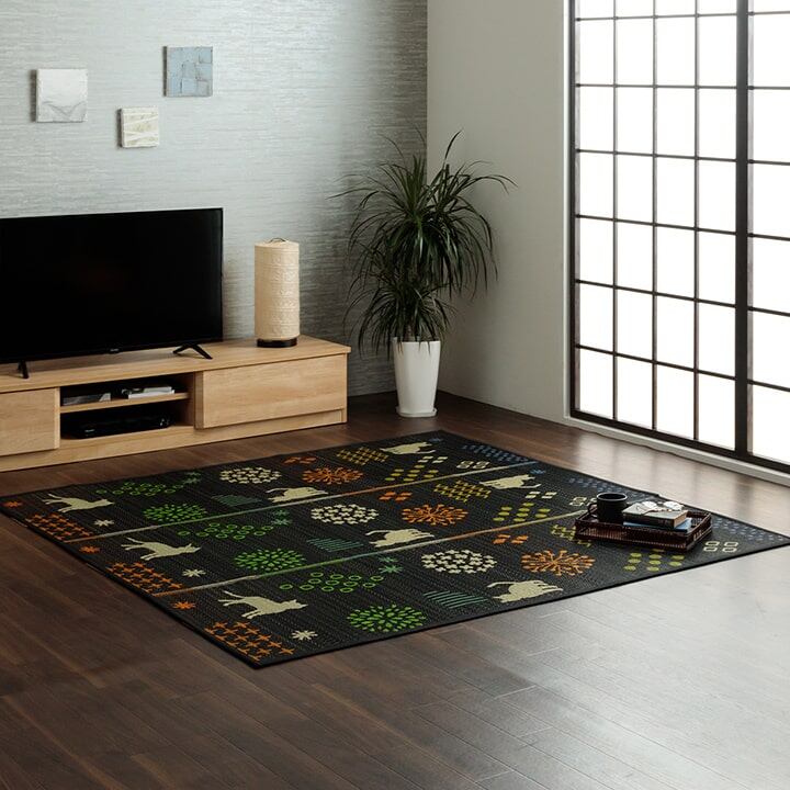 い草ラグ 猫柄 花柄 猫 インテリア 節電 夏用 涼しい おしゃれ おすすめ 湿度調節 消臭効果 お手入れ簡単 約180×240cm