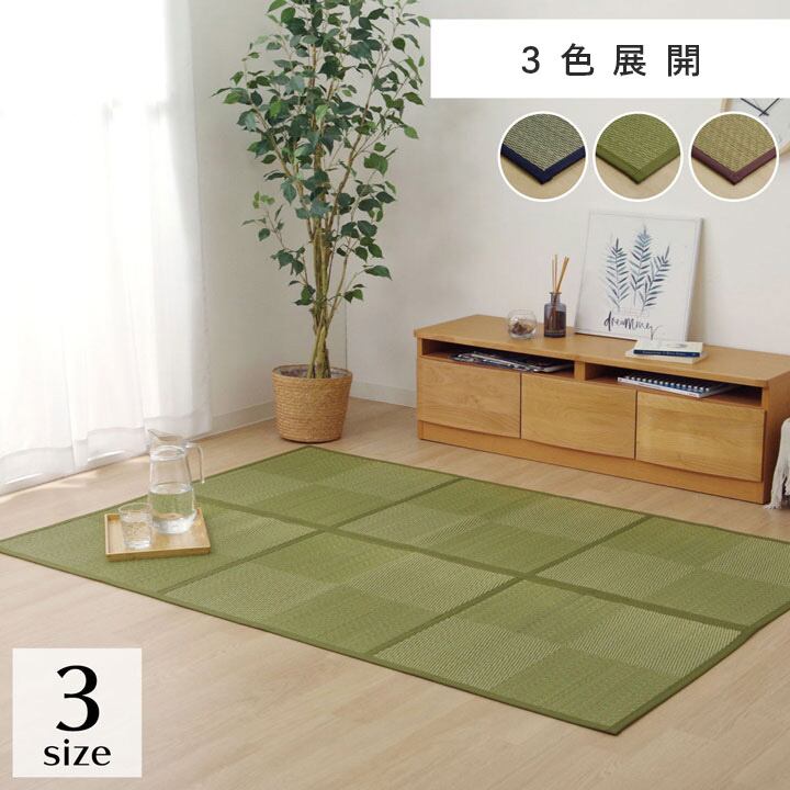 ラグ 正方形 夏用 い草 ブロック 格子柄 市松 チェック 置き畳風 180×180cm