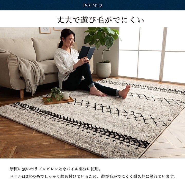 ウィルトン カーペット 長方形 幾何柄 抗菌防臭 約80×140cm