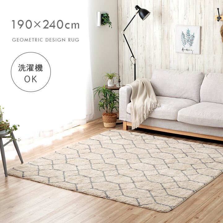 カーペット ふんわりラグ ボリュームタイプ ウォッシャブル 幾何柄 約190×240cm