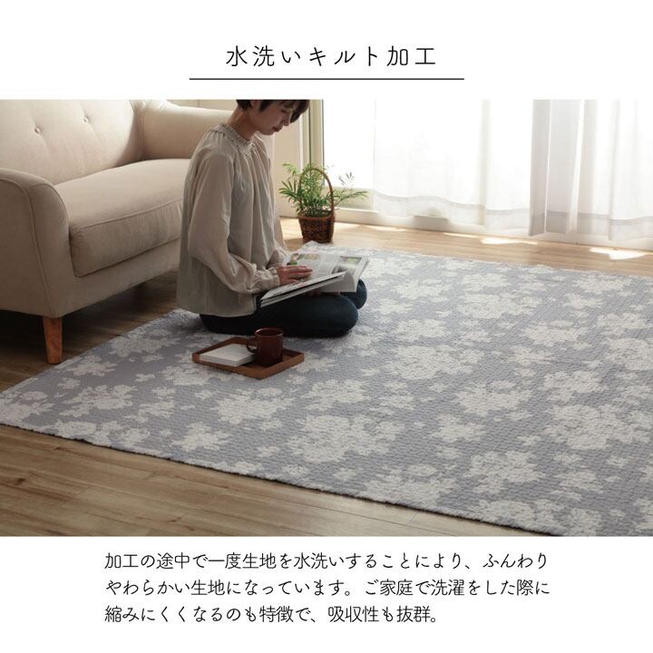 カバー おしゃれ 洗える 長方形 約190×240cm 綿 リーフ・花 水洗いキルト リバーシブル ベッドスプ こたつカバー ソファカバー ホットカーペットカバー