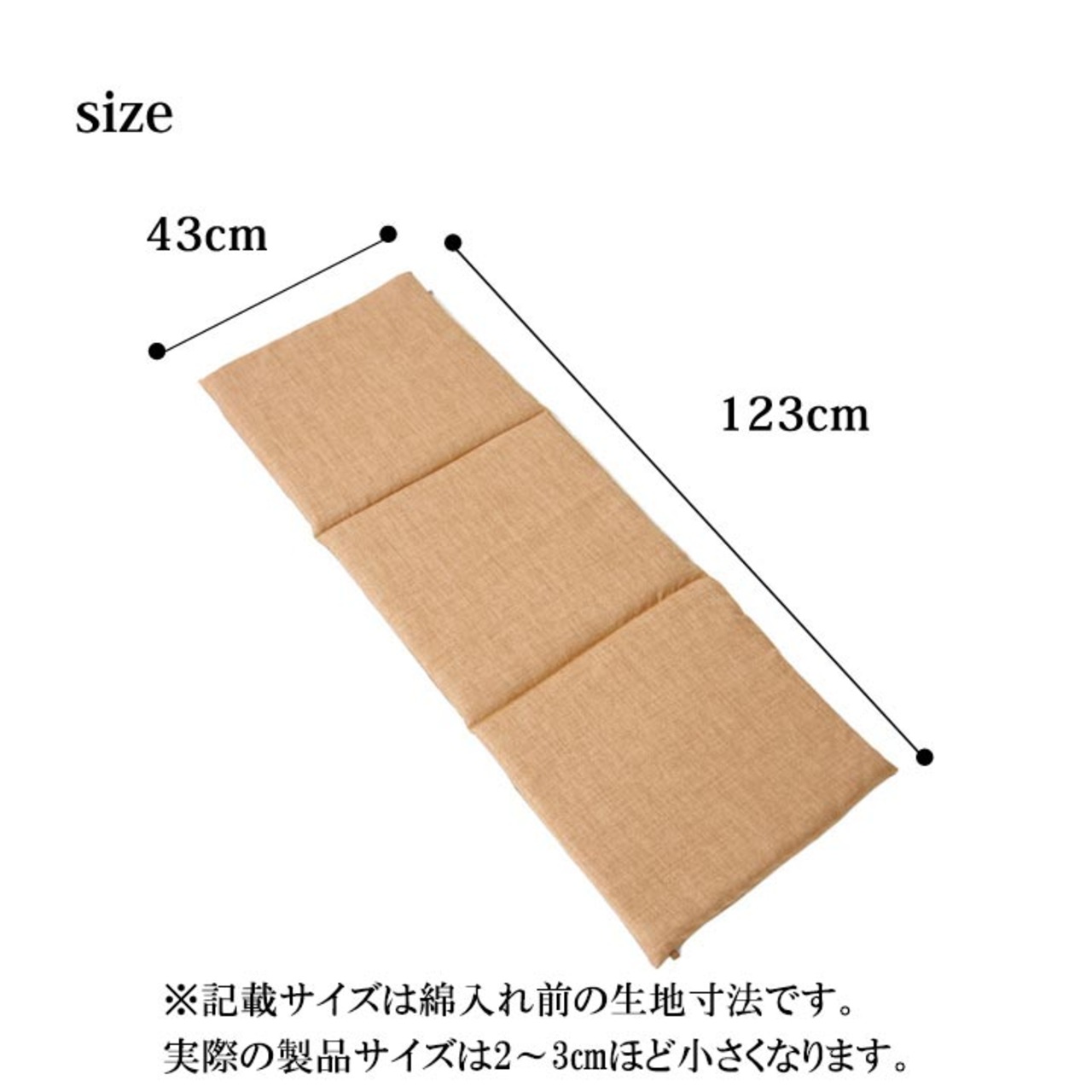 無地でお部屋に合わせやすいデザインの商品です。ベンチタイプのダイニングにもぴったりの商品です。国内で綿入れ加工をしているためほどよいクッション性が特徴です。