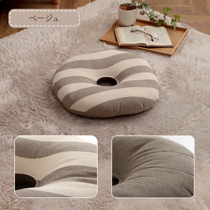 クッション 円形 円座 穴あき 日本製 オーガニックコットン 綿100% ボーダー 洗える 約35cm丸