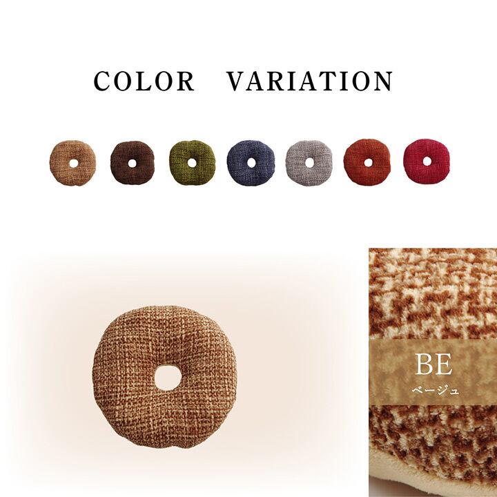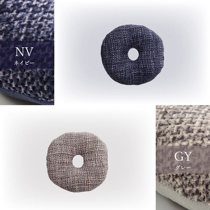 シンプルで飽きの来ないデザインです。表地は針抜きでボコボコとした凸凹を出し、なめらかな肌触りの珊瑚マイヤーを使用しています。円座はお尻や腰への負担を軽減してくれるため、腰などのトラブルをお持ちの方にもおすすめです。