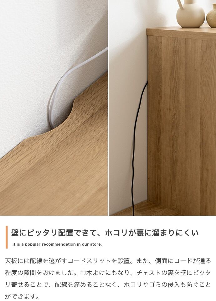 木目×グレーで王道の北欧スタイルを叶える『Alskar(アルスカー)』シリーズのチェスト。余計な装飾の無いシンプルなフォルムと、外側からネジ穴が見えないノイズレスデザインです。コンパクトサイズながらも収納力抜群で、一人暮らしやワンルームにもピッタリです。