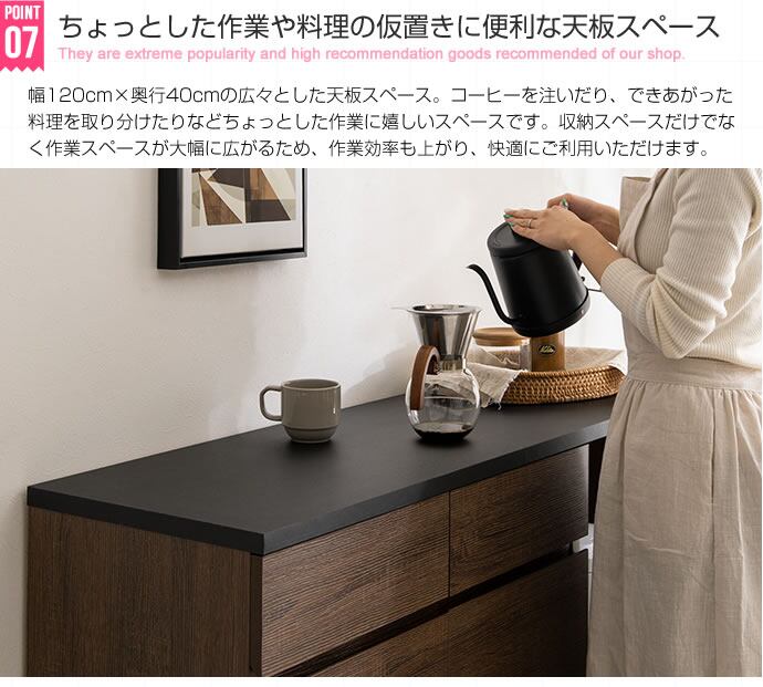 【幅120cm】 Koti キッチンカウンター