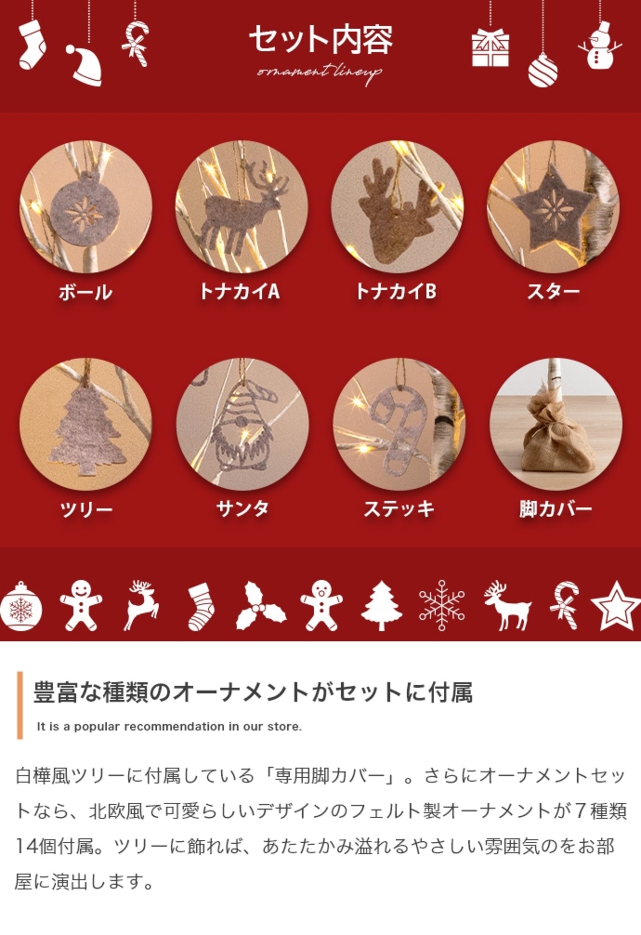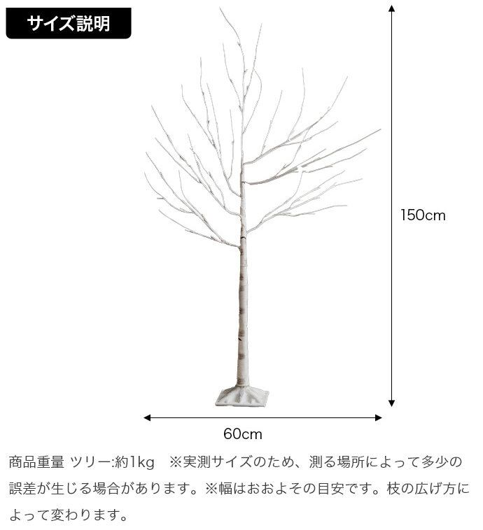 【オーナメントセット】Schnee 高さ150cm 白樺風ツリー+オーナメント