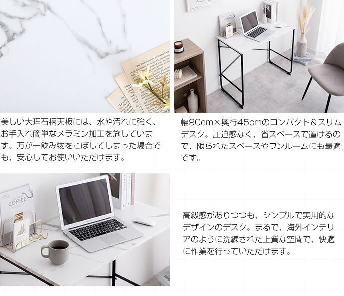 清潔感溢れる上品な佇まいの『Amy(エイミー)』の大理石柄デスク