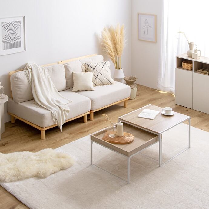 機能的で洗練された空間を作る『Planche(プランシュ)』ネストテーブル。スタイリッシュなワイヤーフレームは置くだけで憧れのシンプルモダンなインテリア空間に。また、伸縮可能なため、間取りやシーンに合わせて、必要に応じて幅調整が可能です。別々に独立して使用することもでき、センターテーブルやサイドテーブルとして幅広い用途でお使いいただけます。