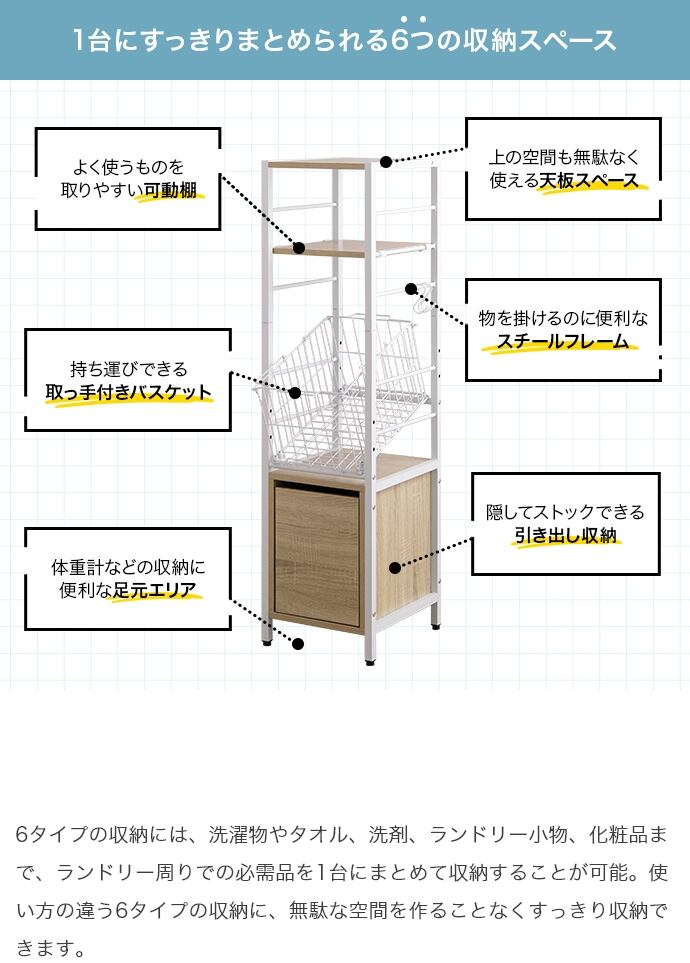 【幅32cm】Sally 引き出し付きランドリーバスケット