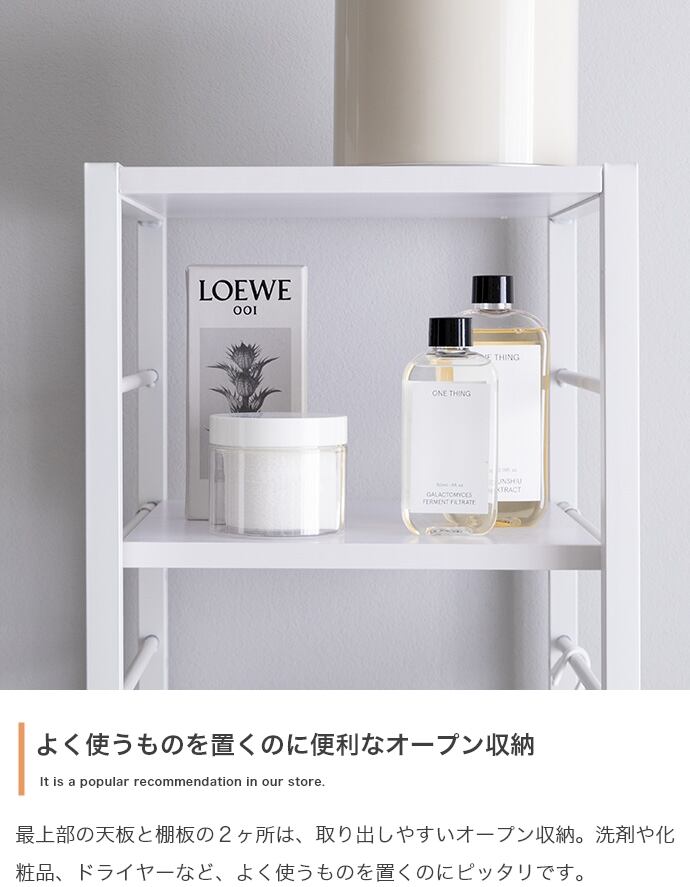 洗濯機や洗面台の横に発生しがちな隙間を有効的に活用する『Sally(サリ)』引き出し付きランドリーバスケット。幅32cmと、スリム設計でスペースに余裕のない場所にも置きやすいサイズ感です。大容量の収納スペースを備えつつ、シンプルで開放的なフレームデザインが空間をすっきり見せてくれます。