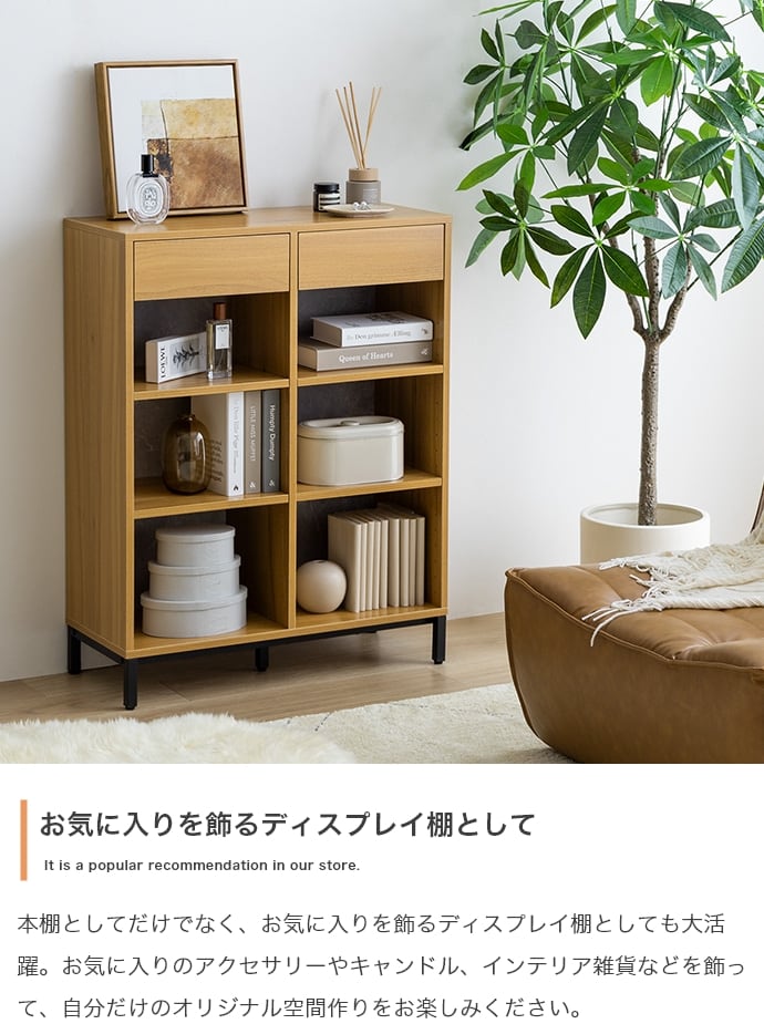 ヴィンテージ感のある木目調とストーン調の組み合わせが、お部屋をおしゃれに演出する『Pesci(ペッシ)』シリーズの引出し付き本棚。19段階で動く4つの可動棚はお好みの高さに調節ができ、スペースの無駄なく収納することができます。また、コンパクトで置きやすいサイズ設計なので、一人暮らしやワンルームにお住まいの方にもピッタリです。