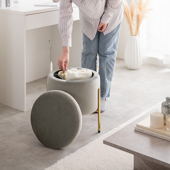 3WAYで使えるエレガントデザインの『Etincelle(エタンセル)』収納付きスツール。美しく上品なデザインだけでなく、スツール、サイドテーブル、収納と3WAYでお使いいただけます。また、座り心地や高さ、コンパクトなサイズ感にもこだわり、使いやすさも追求しました。ワンランク上の上質な空間で快適にお過ごしいただけます。