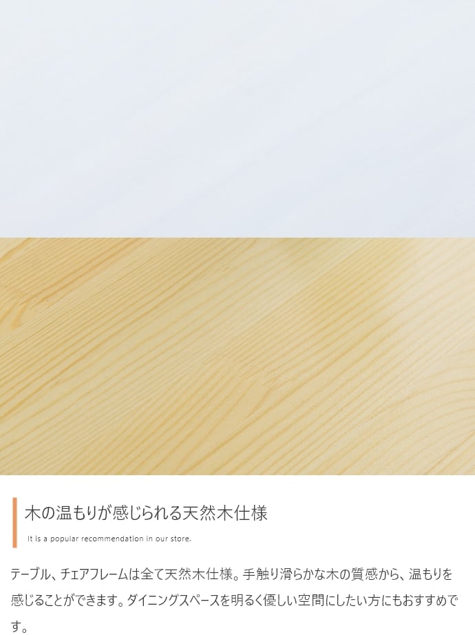 お部屋に馴染みやすいカラーと温かみある木目が特徴の『Perhe(ペルへ)』ダイニングセット。フレームは全て天然木仕様で、ナチュラル感溢れる居心地のいい空間を演出します。また座面には、ウレタンを使用しており、長時間座っていても座り疲れしにくいです。食事はもちろん、仕事や趣味など幅広いシーンで快適にお使いいただけます。