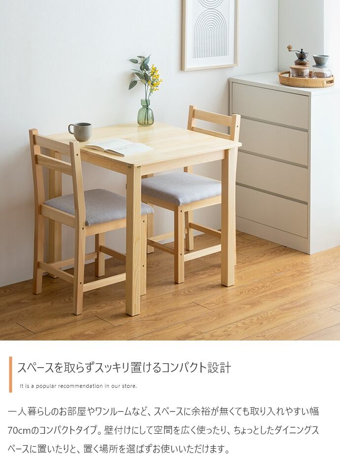 【3点セット】Perhe 幅70cm ダイニングチェア2脚+テーブル