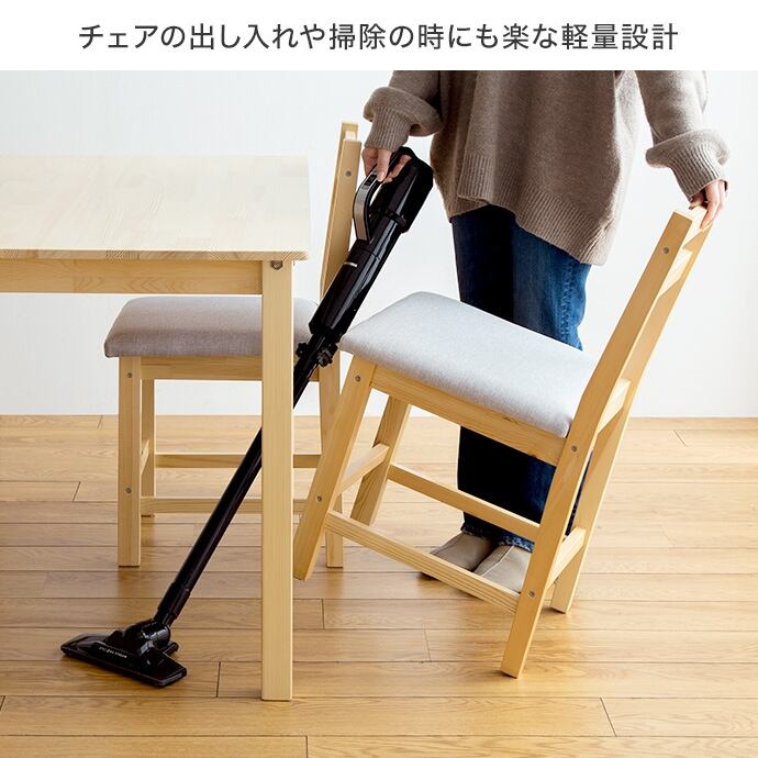 お部屋に馴染みやすいカラーと温かみある木目が特徴の『Perhe(ペルへ)』ダイニングセット。フレームは全て天然木仕様で、ナチュラル感溢れる居心地のいい空間を演出します。また座面には、ウレタンを使用しており、長時間座っていても座り疲れしにくいです。食事はもちろん、仕事や趣味など幅広いシーンで快適にお使いいただけます。