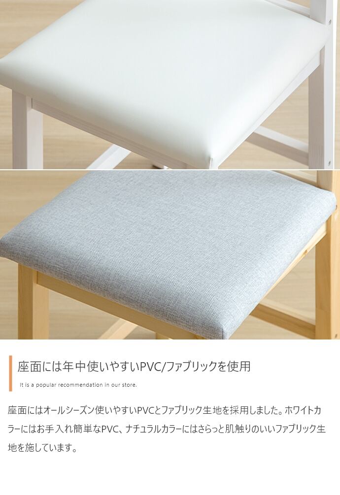 【チェア】パイン材、ウレタン、ファブリック(グレー)、PVC(ホワイト)