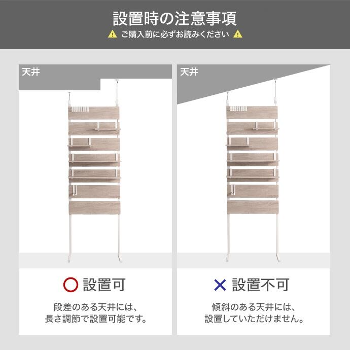 壁に穴をあけることなく、簡単に壁面収納ができる『Seina(セイナ)』突っ張りウォールラック。シンプルなお部屋に馴染みやすいデザインで省スペース設置ができるので、場所を選ばず幅広いシーンでご使用可能です。さらに、便利な2タイプの棚板とS字フック付きで自由にお好みのレイアウトに変えてオリジナルの空間作りをお楽しみいただけます。雰囲気を変えたい方や、賃貸にお住まいの方にも使いやすくおすすめです。