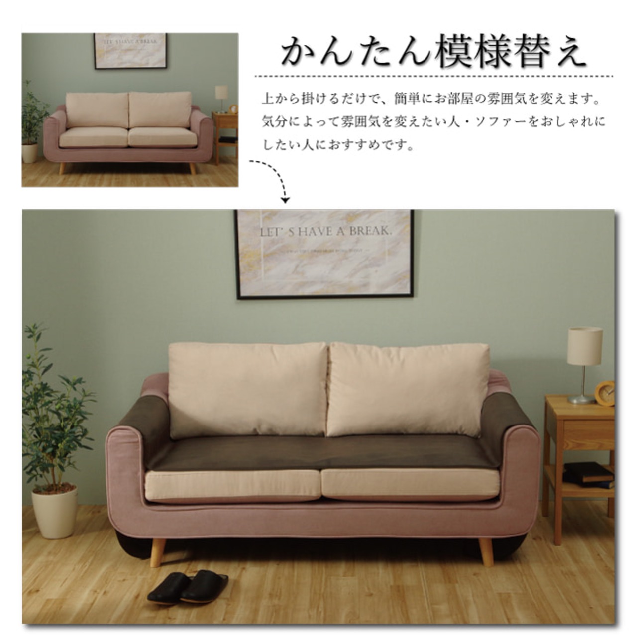 汚れやペットの引っかき傷からソファーをまもるソファーカバー。抗菌防臭加工付きでペットも安心してお使いいただけます。