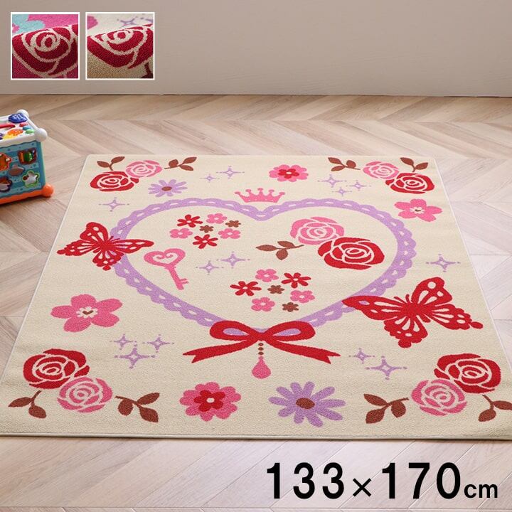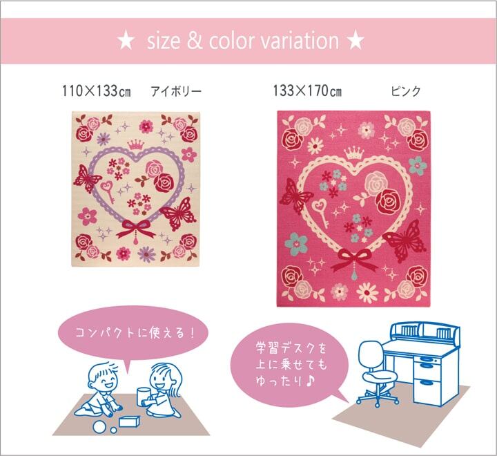 デスクカーペット 女の子 ハート柄 約133×170cm