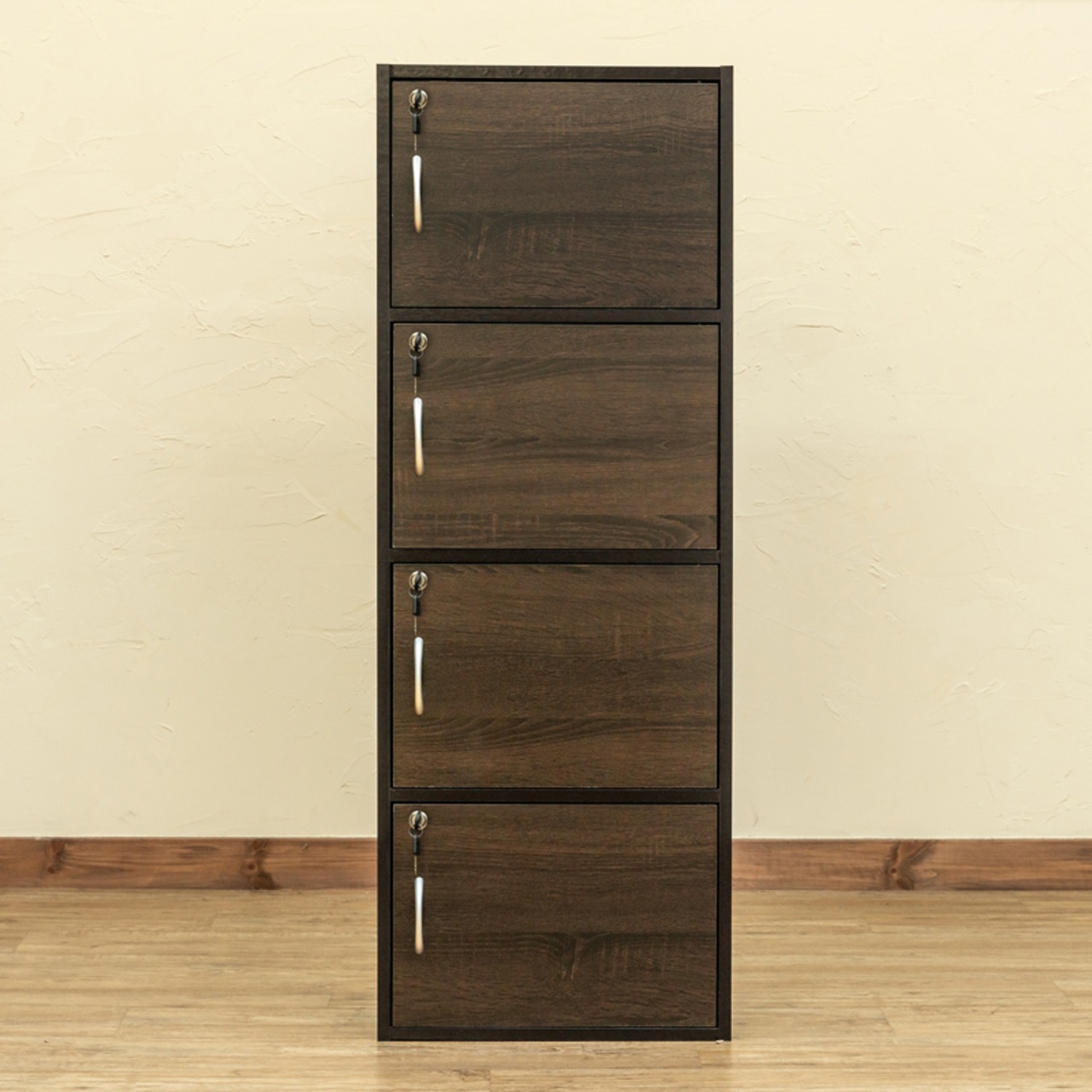 扉付きラック4段 各2個鍵付きです。