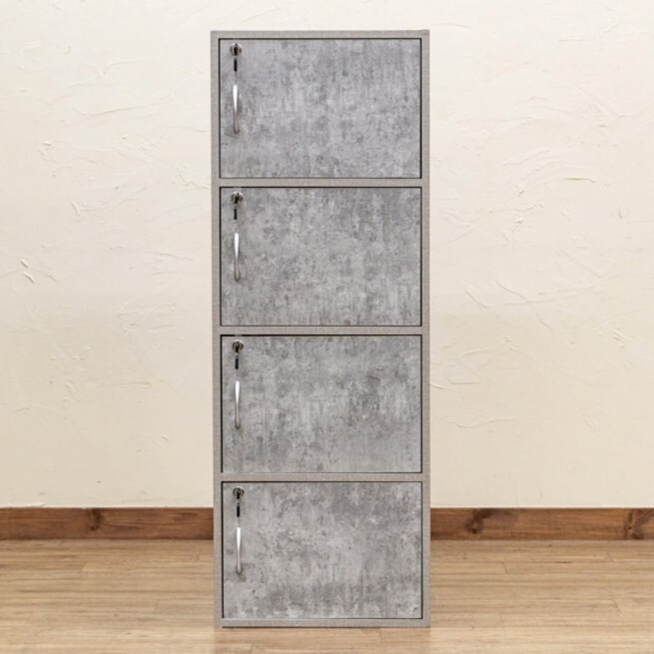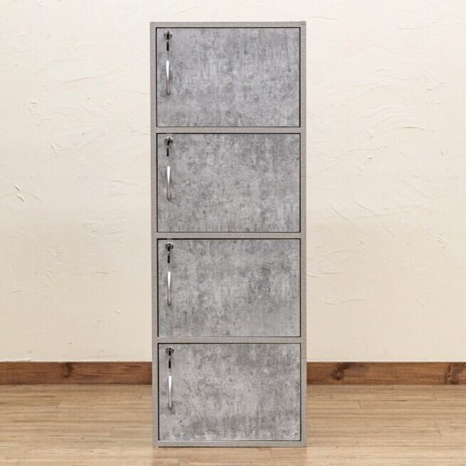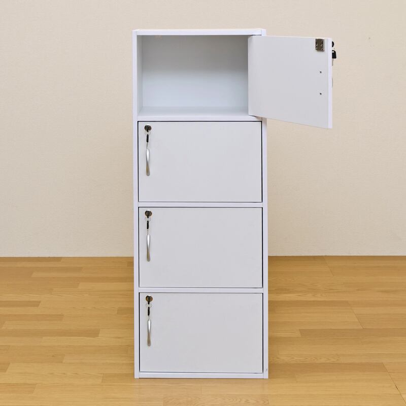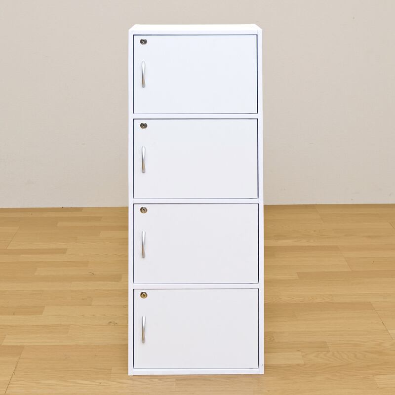 扉付きラック 4段 扉付ボックス棚 W42 キャビネット 鍵付き