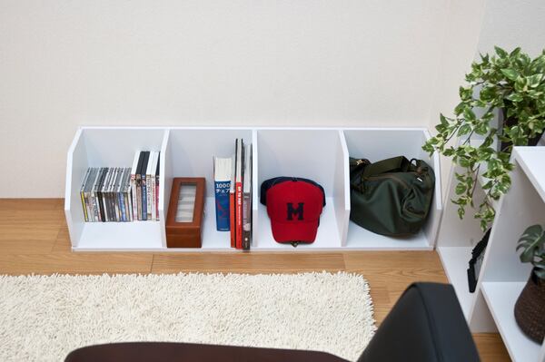 コーナーのデッドスペースを有効に使えます。真四角ではなく、上から見ると五角形になってます。