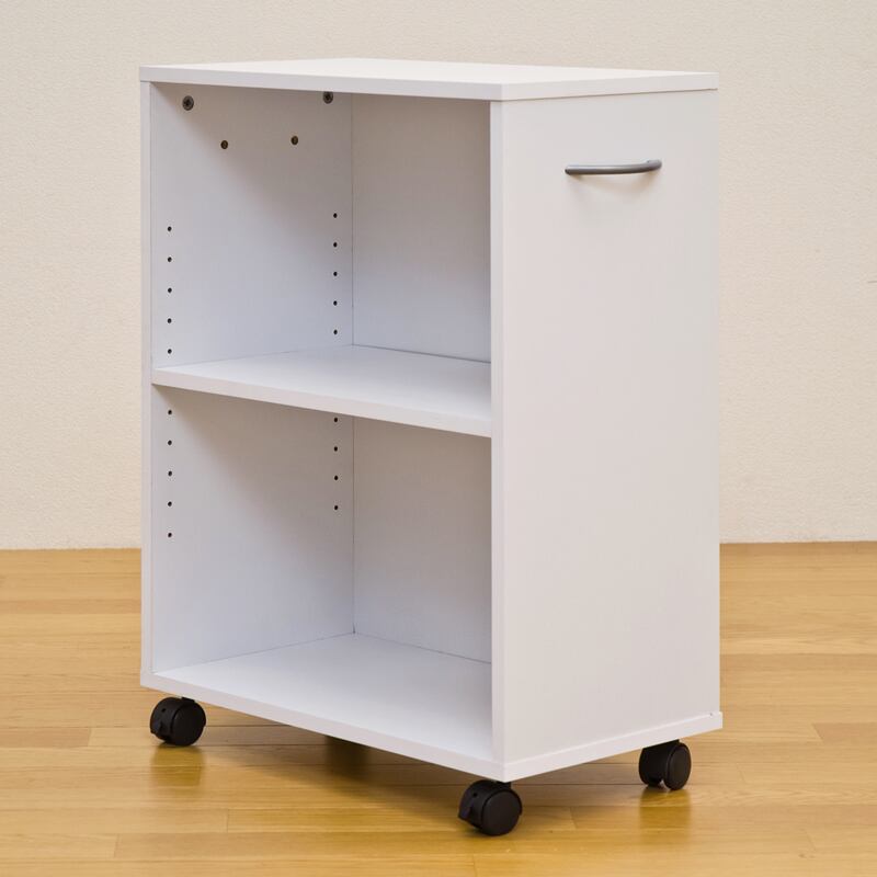 3cmピッチ、全11段階調節可能です。取っ手は左右お好みで取り付け出来ます。キャスター付きなのでデスク脇にあると便利です。