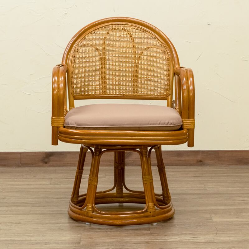 天然ラタン(籐製) チェア メッシュ編み 回転座椅子 ハイタイプ クッション付
