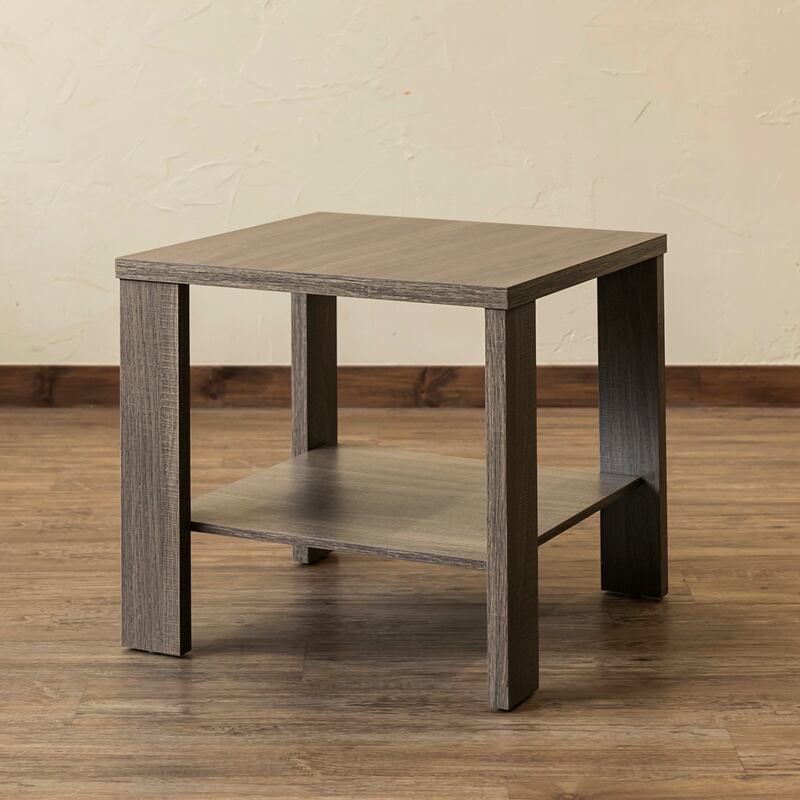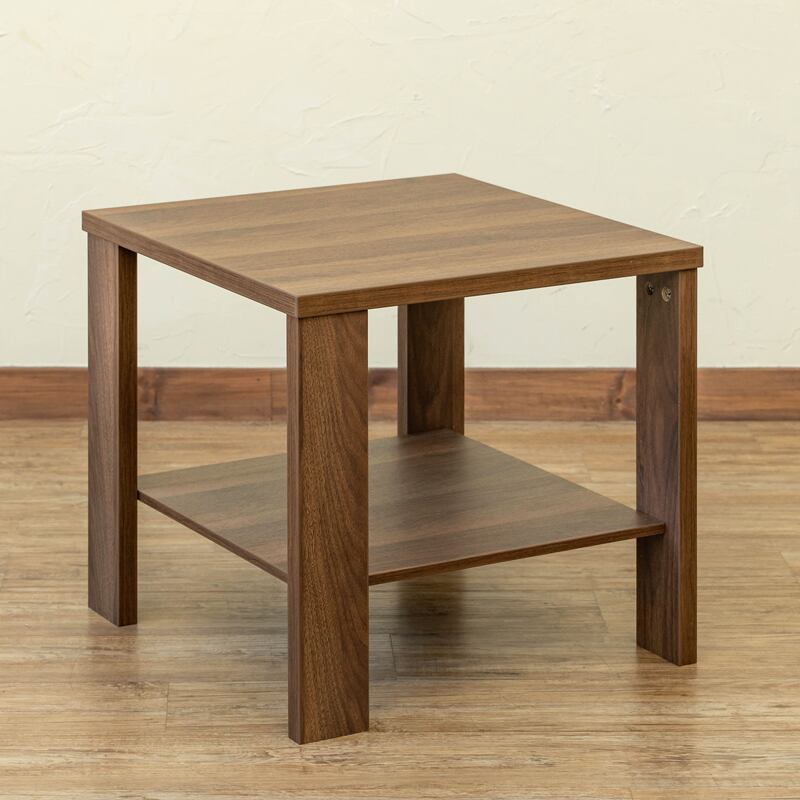 50cm角のサイドテーブルです。棚板付きです。ソファサイドで役立ちます。