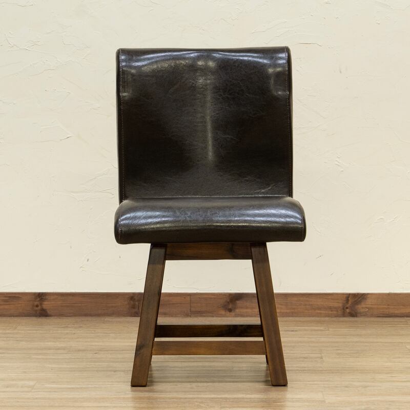 LUNA ヴィンテージ調 PUレザー デザイナースタイル 回転式ダイニングチェア 天然木脚