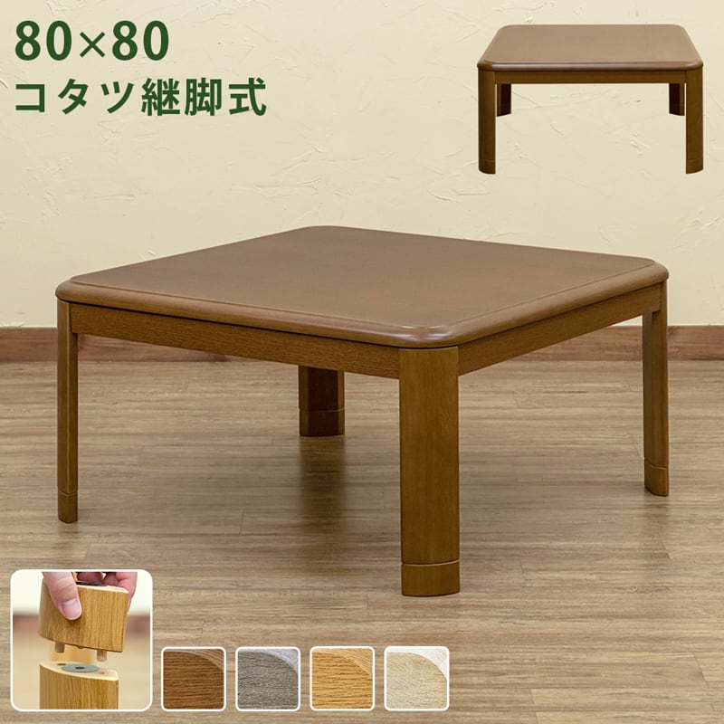 シンプルなデザインの家具調コタツ 継脚式 80×80 正方形です。