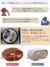 自動巻時計専用の電動振動装置です。4本の時計を同時に巻き上げます。別途6本の時計を収納可能です。本体表面は柔らかな質感のPUレザーです。3通りの回転方法から設定が出来ます。本体背面のスイッチで設定を行って下さい。