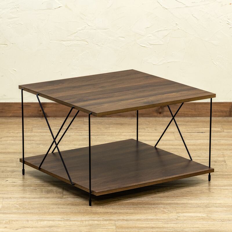 スリムなスチールフレームとヴィンテージテイストの木目柄天板を組み合わせたおしゃれなコーヒーテーブルです。天板はバランスよくスペースを活用できる使いやすい正方形。。