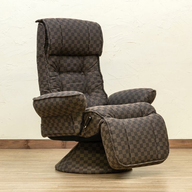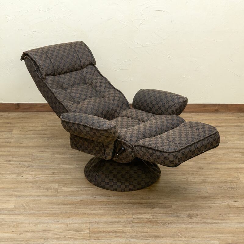 フルフラット 低反発入り レバー式リクライニングチェア ブラウンチェック柄ファブリック