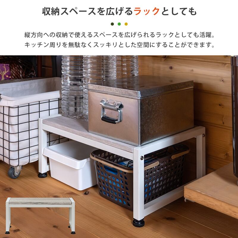 縦方向への収納で使えるスペースを広げられるラックとしても活躍します。天板は木目柄のPVCシート貼りで汚れや水に強くサッと拭いてお手入れが簡単。光沢を抑えた脚の先端にはアジャスターが付属しており、微調整でガタつきを解消できます。
