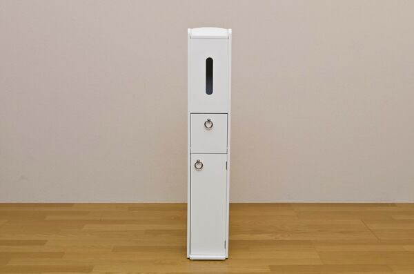 トイレ用洗剤、除菌スプレーやトイレットペーパーが たくさん収納できて大変便利。洗剤以外にもいろいろ収納出来ます。扉の丸い取っ手がチャームポイント。清潔感あふれるホワイトです。