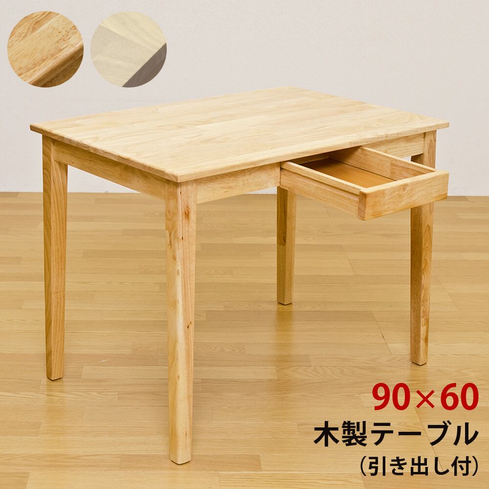 木製テーブル W90×D60 天然木机 2引出し付 パソコンデスク カントリー調