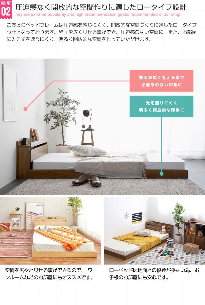 圧迫感がなくお部屋を広く魅せることが出来る『Coroa(コロア)』シリーズのフロアベッド。ベッドの高さを低くするロースタイル設計で、窮屈になりがちな寝室もゆとりある空間になります。ヘッドボードにはスマホや眼鏡などを置くのに便利な宮棚付きです。