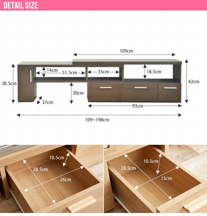 〇サイズ:【商品サイズ】幅:109〜198cm×奥行き:37cm×高さ:41.5cm