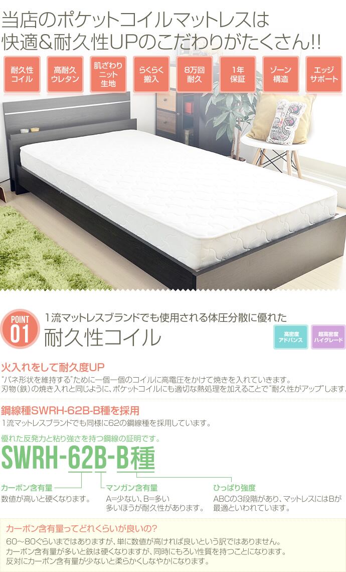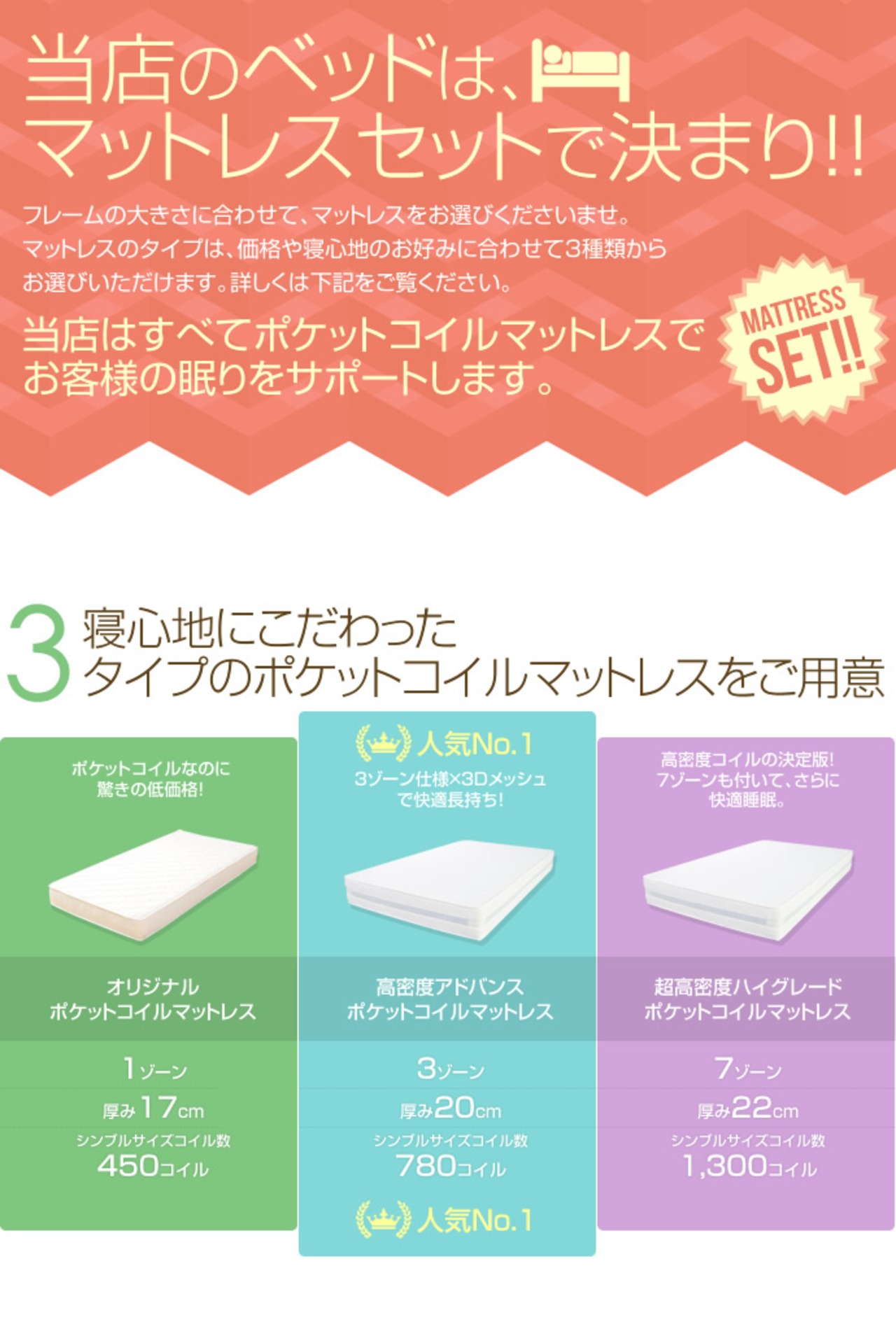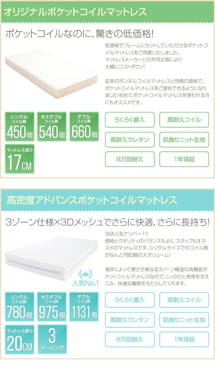 【オリジナルポケットコイルマットレス】幅:140cm×奥行:約195cm×高さ:17cm(コイル数:660)
