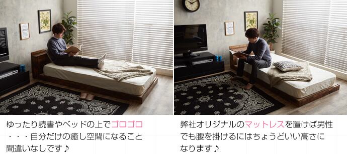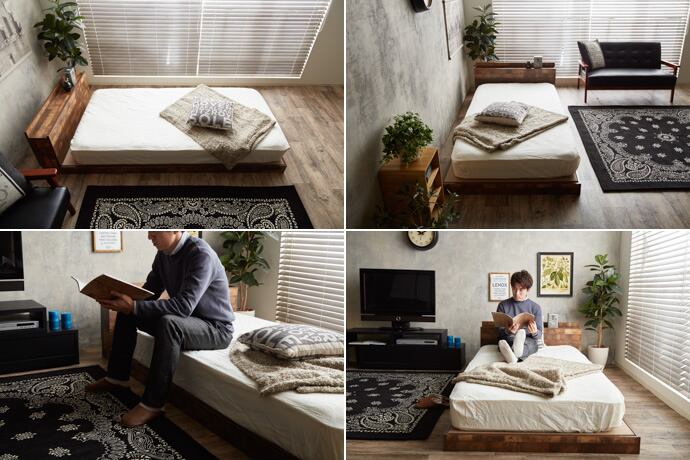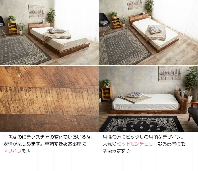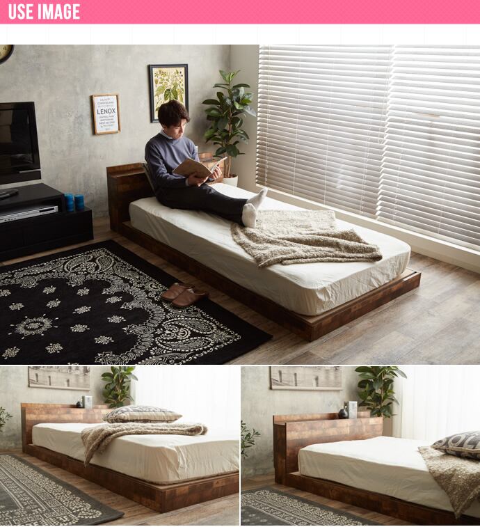 存在感抜群の人気のローベッドです。存在感のあるお洒落な寄木柄がポイント♪ロースタイルなので圧迫感がなく一人暮らしの方などお部屋を広く使いたい方にはおすすめの商品です!小物置きに便利な宮棚やコンセントも付いているので枕元で携帯の充電ができるのも嬉しいですよね♪