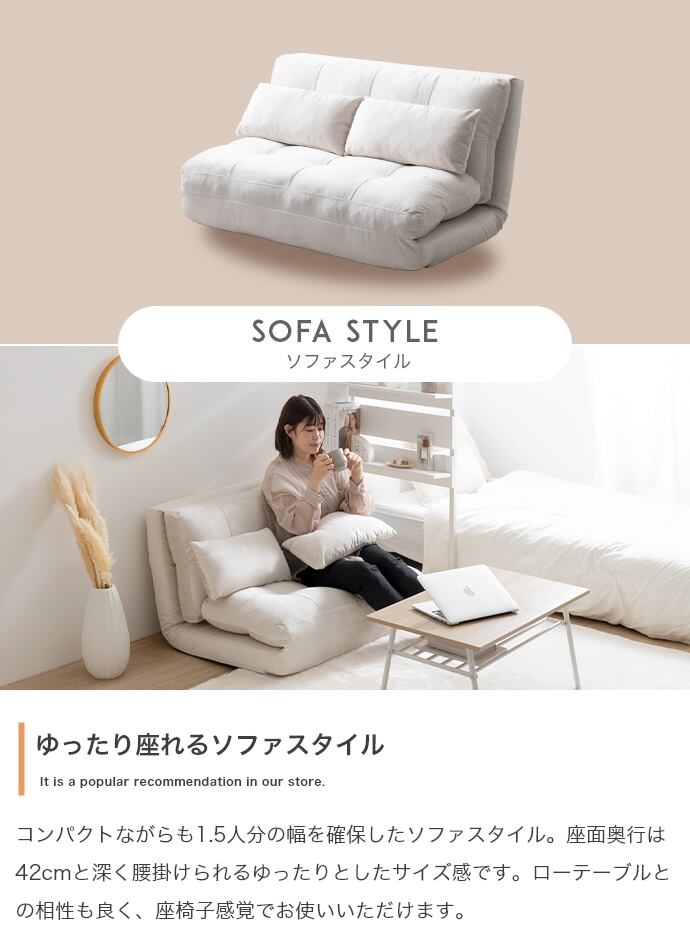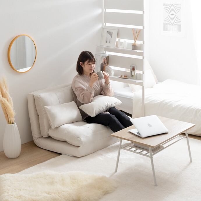 1台でソファ・カウチ・ベッドになる『Lara(ララ)』シリーズのリクライニングソファベッド。背もたれの角度を6段階で調節でき、楽な姿勢が取れるので快適なくつろぎタイムを叶えてくれます。また、ロー設計なのでお部屋に圧迫感を与えず、一人暮らしやワンルームにもピッタリです。