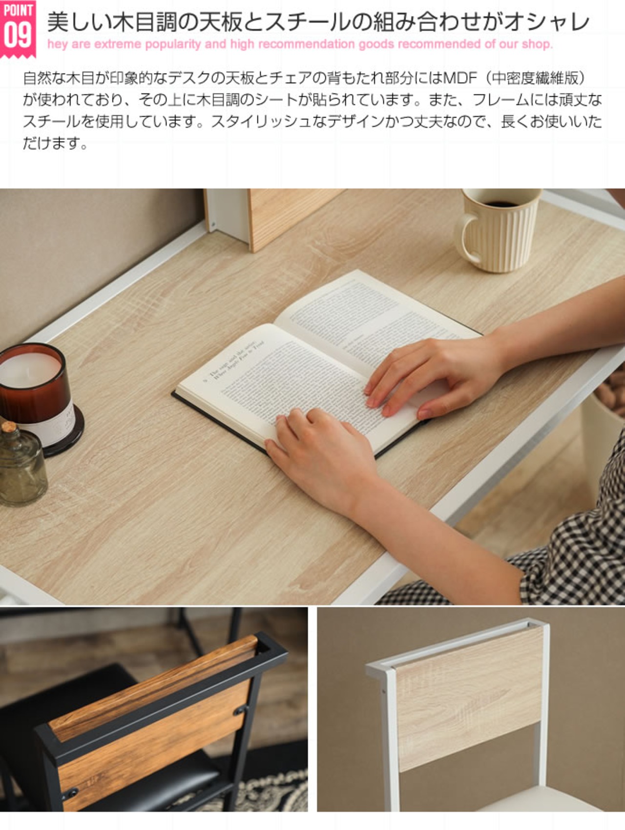【商品重量】デスク:約9.3kg、チェア:約5kg