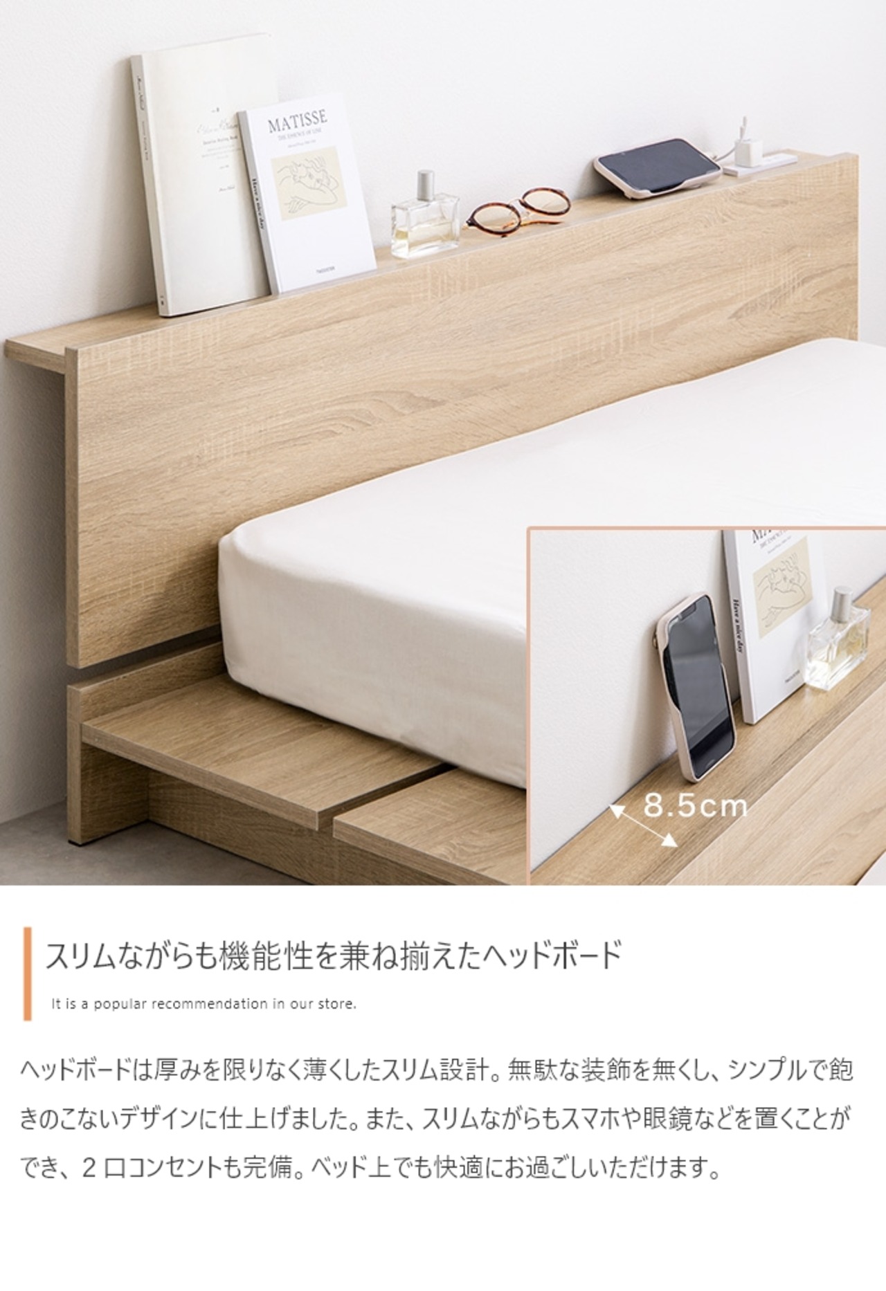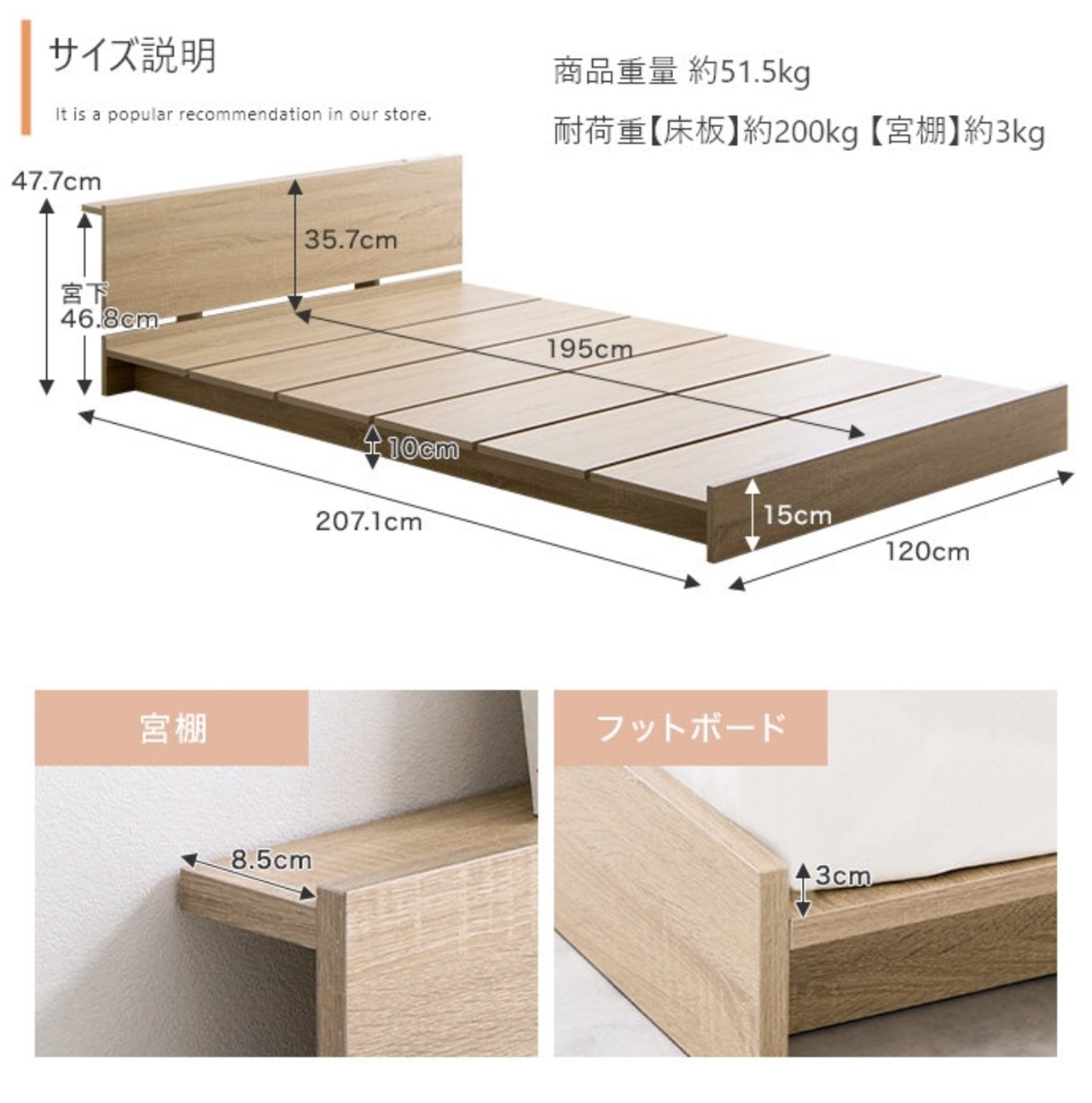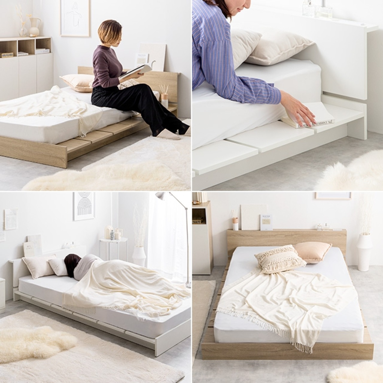 好きなスタイルで使えて、人気のロースタイルのお部屋も作れる『Yuseong(ユソン)』幅広すのこローベッド。マットレスのサイドにはスペースができる幅広設計で、小物や本などを置いていただけます。また、ロータイプで空間を広く見せることができるので、ワンルームやスペースに余裕のないお部屋にお住まいの方にもおすすめです。