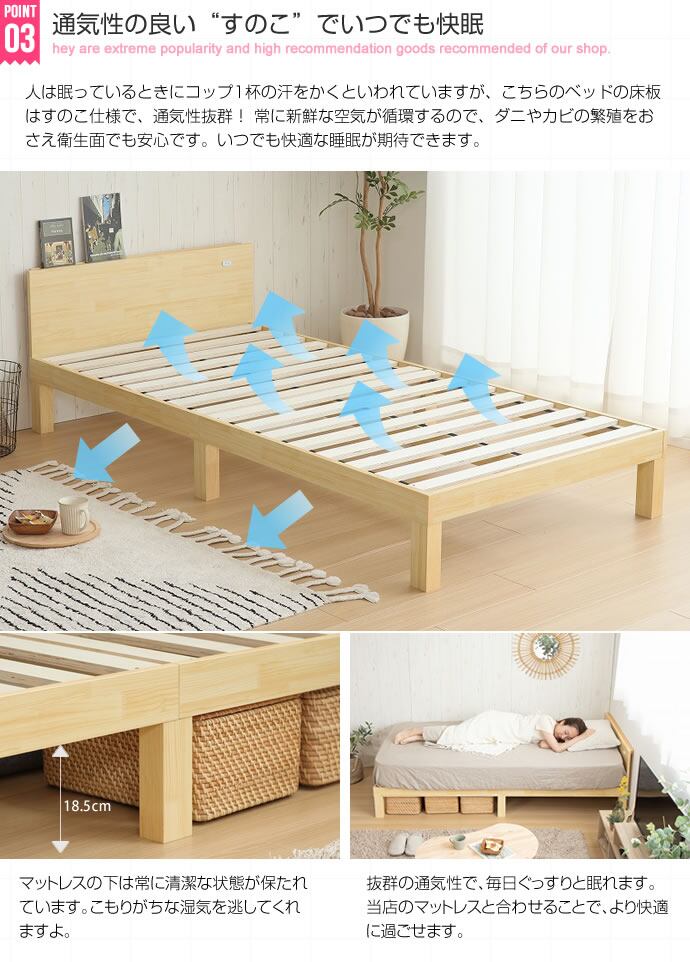 通気性の良いすのこ仕様なので、いつでも快適におやすみいただけます。