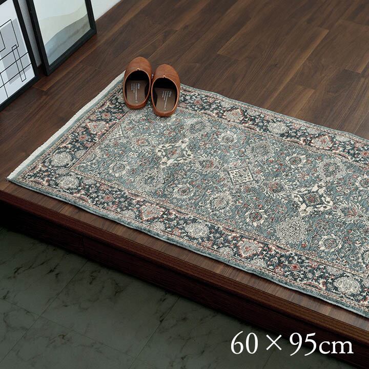 玄関 マット トルコ製 ウィルトン 織り クラシカル柄 上品 繊細 立体感 超高目付 肌触り柔らか 抗菌防臭 消臭 丈夫 へたりにくい 1年中 ソファー前用 ベッドサイド用 約60×95cm