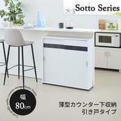 カウンター下収納 引き戸 薄型 キャビネット カウンター下 ラック 幅80 奥行22 高さ80 キッチン スリム 収納棚 ホワイト 扉付き ルーター 目隠し 白 食器棚