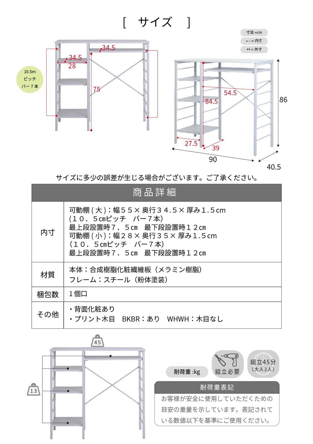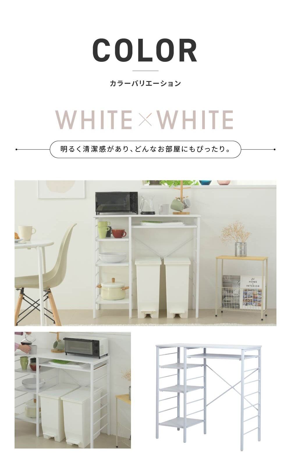 キッチンカウンター ゴミ箱スペース キッチンラック 食器棚 幅90 奥行40 高さ85 レンジ台 間仕切り 棚 スリム ラック 作業台 食器 家電 収納 天板 メラミン 木製 ホワイト